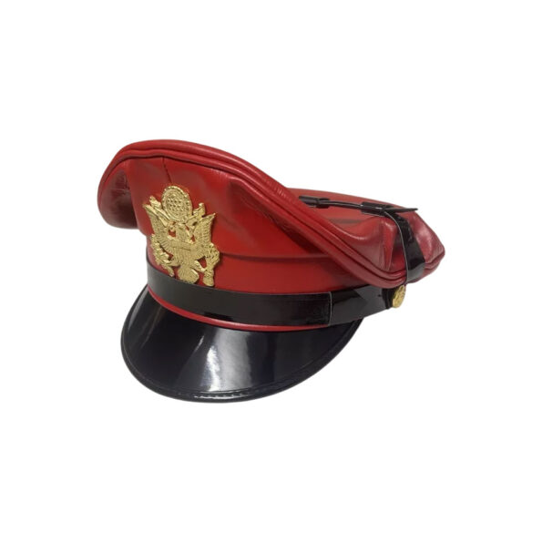 Genuine Real Leather Red Army Muir Biker Peaked Police Gay Bluf Cap Hat